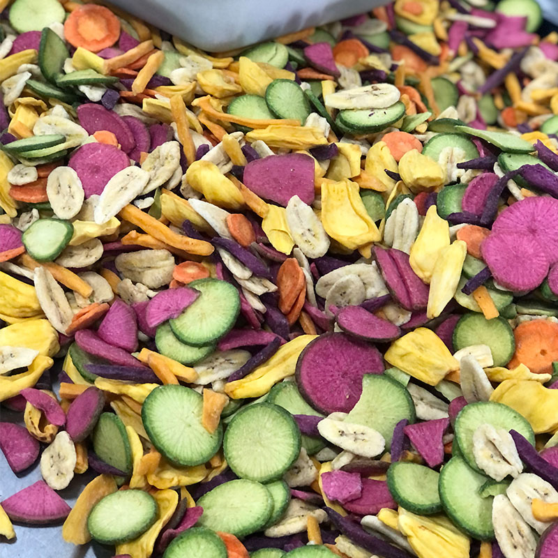 優(yōu)點(diǎn):通過低溫真空油炸技術(shù),果蔬脆片的制作過程更加環(huán)保和健康,避免了高溫油炸可能帶來的營(yíng)養(yǎng)流失和食品安全問題。萊陽(yáng)客戶使用低溫真空油炸機(jī)制作果蔬脆片的試機(jī)現(xiàn)場(chǎng)展示了該設(shè)備在快速脫水、低含油量、高貯性能等方面的優(yōu)勢(shì),為客戶提供了一種高效、健康的食品加工解決方案。