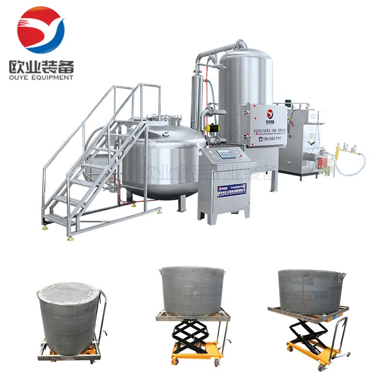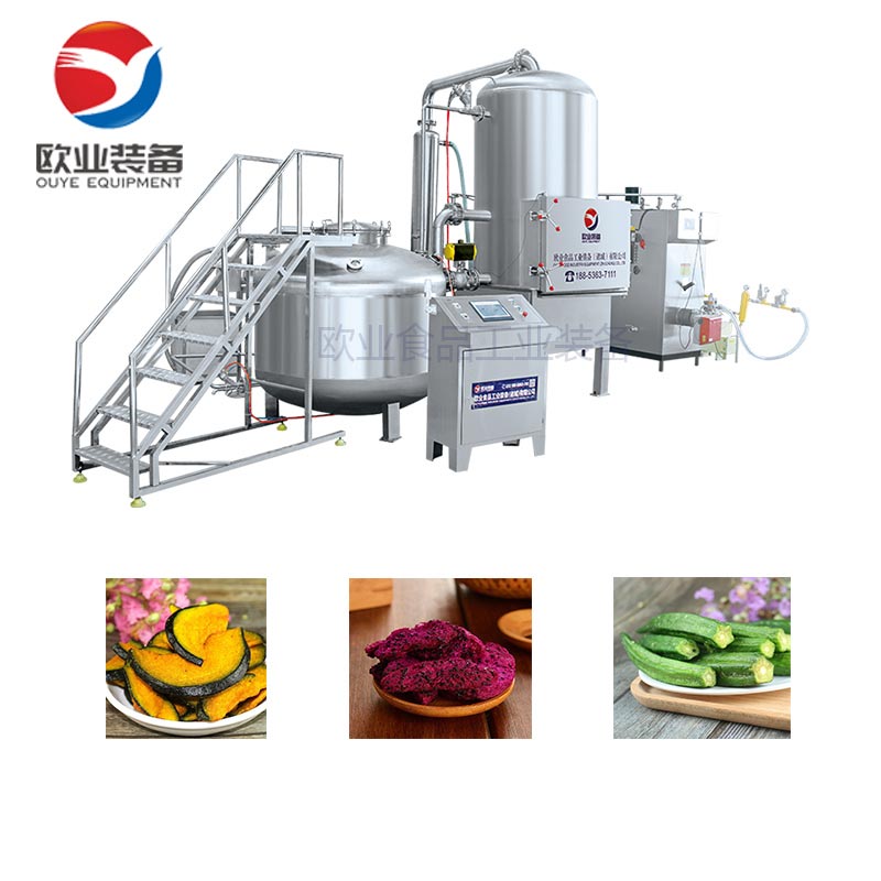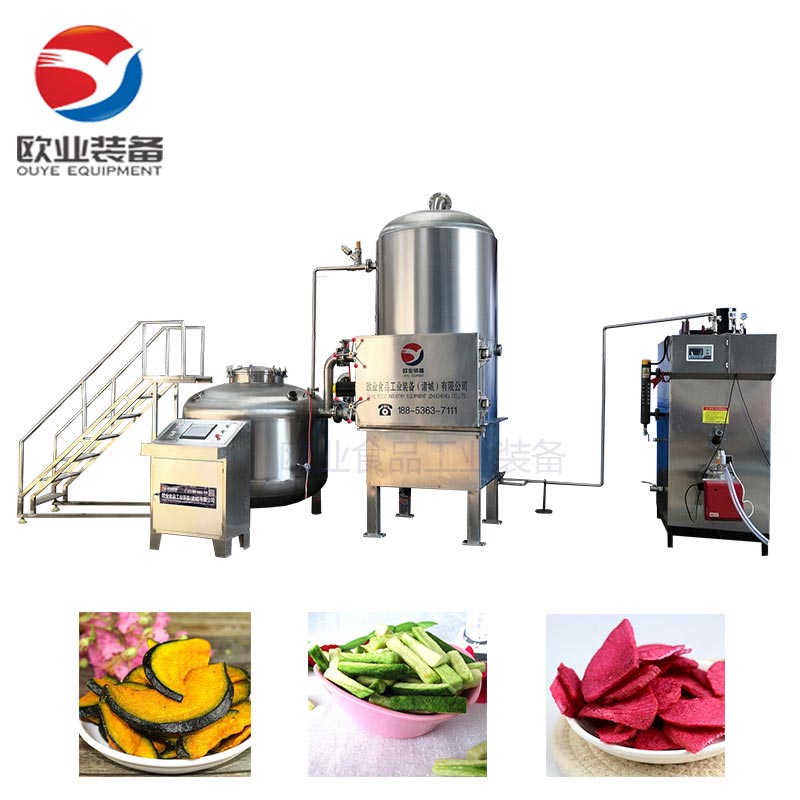 真空低溫油炸設(shè)備組成:真空油炸罐、油加熱系統(tǒng)、真空系統(tǒng)、儲(chǔ)油補(bǔ)油系統(tǒng)、氣動(dòng)系統(tǒng)、自動(dòng)脫油系統(tǒng)